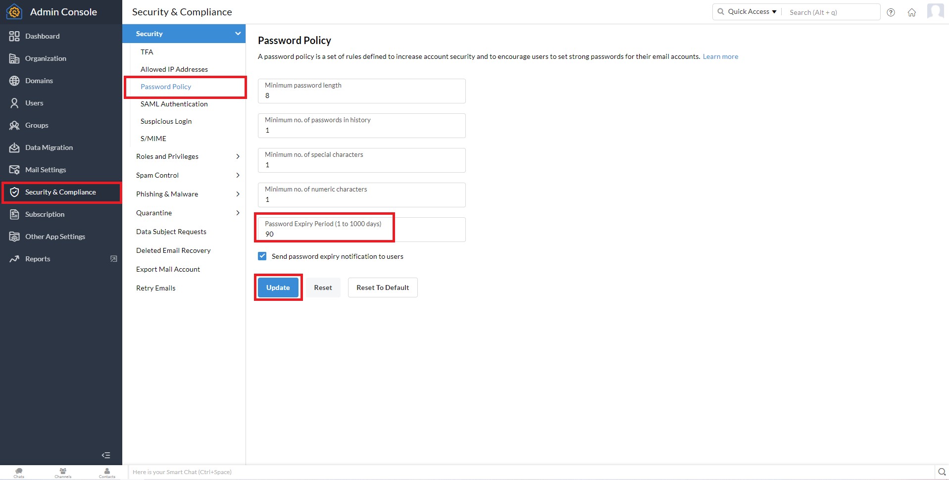 ไปที่ Admin center 1.เลือก Settings 2.จากนั้นเลือก Org Settings 3.เลือกในส่วนของ Security & privacy จากนั้นคลิกเข้าไปที่ Password expiration policy 4. ทำเครื่องหมายถูกหน้าข้อความ Set user passwords to expire after a number of days ...