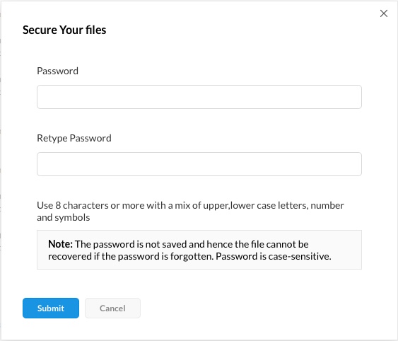 คุณสามารถรักษาความปลอดภัยและป้องกันปฏิทินที่ดาวน์โหลดจาก Zoho Calendar โดยเปิดใช้งานการป้องกันด้วยรหัสผ่าน เมื่อคุณบันทึกปฏิทินเป็น PDF คุณสามารถเลือกที่จะเพิ่มรหัสผ่านลงในไฟล์ได้