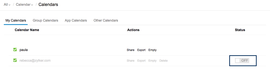 3. เลือกปฏิทินที่คุณต้องการแสดง / ซ่อนจากรายการ "ปฏิทินของฉัน", "ปฏิทินกลุ่ม", "แอปปฏิทิน" และ "ปฏิทินอื่น"