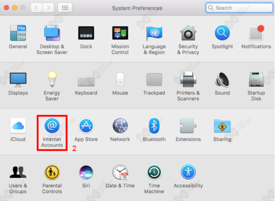 2. จากนั้นคลิกเลือกไอค่อน Internet Accounts