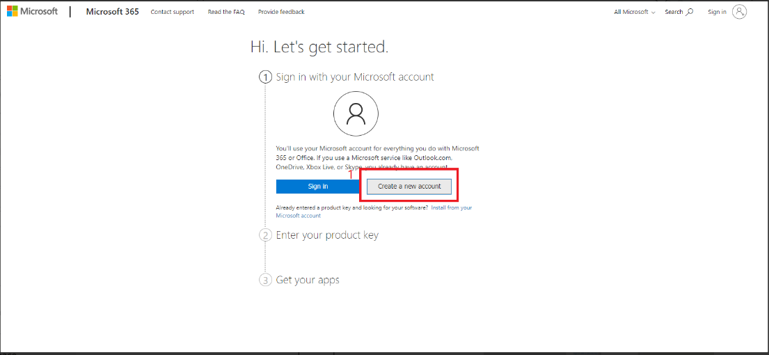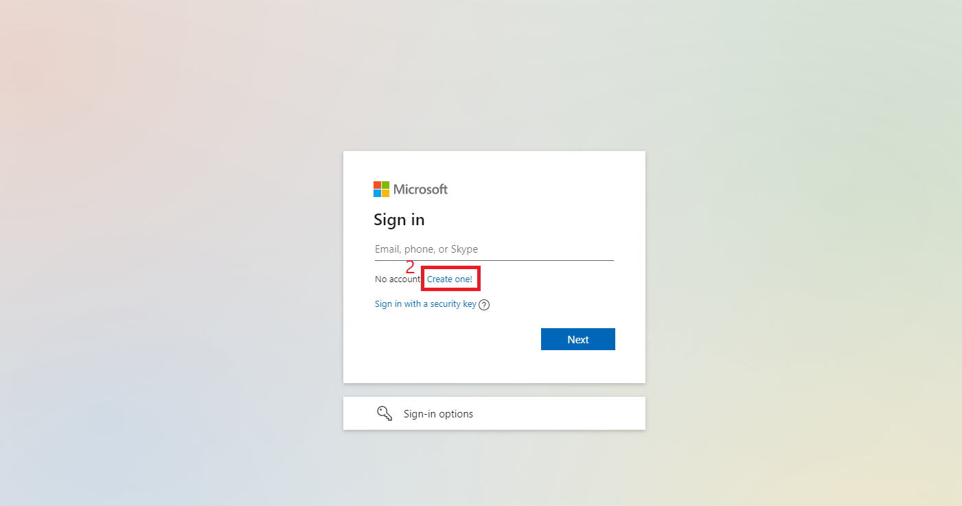 2. Create a new account > Create one! ใช้ E-Mail ในการลงทะเบียน (ควรใช้อีเมล @hotmail , Outlook)