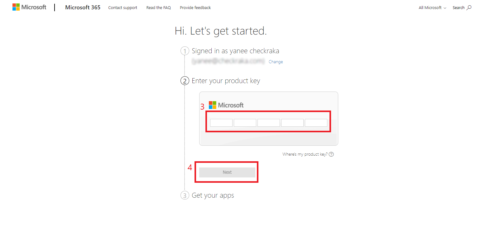 3.ใส่ Product key card > Next