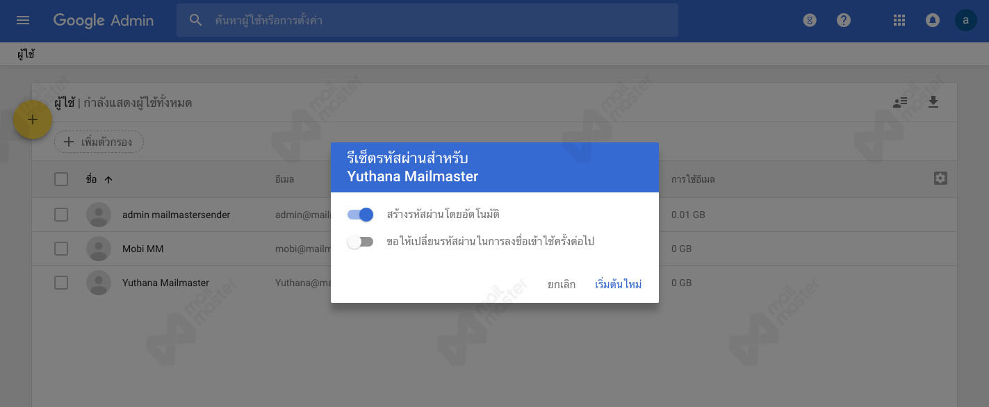 3. จะปรากฏหน้ารีเซ็ตตามรูป หากต้องการให้ระบบสร้างรหัสผ่านแบบอัตโนมัติ ให้คลิก “เริ่มต้นใหม่” ได้เลย