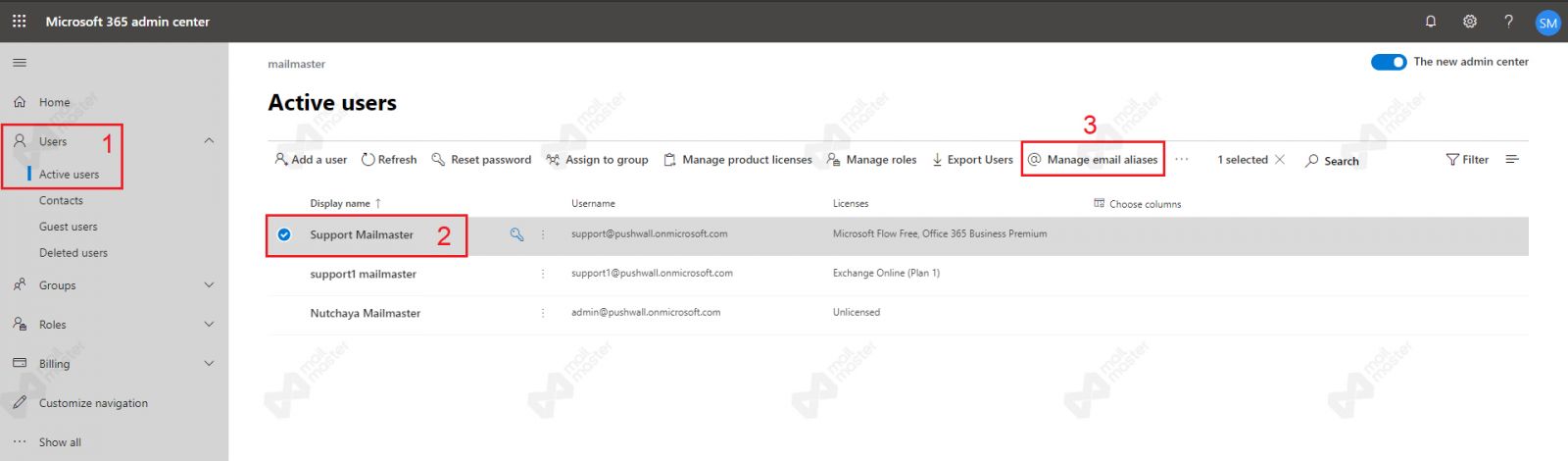 2. คลิกเลือก User ที่ต้องการสร้าง Aliases