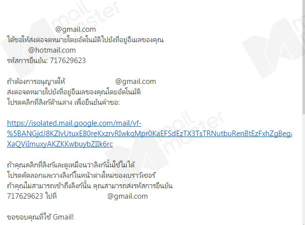 4. จะมีอีเมลยืนยันส่งไปยังที่อยู่ดังกล่าว เช็คอีเมลปลายทางเพื่อคลิกลิงค์ยืนยัน (ถ้าไม่พบใดังกล่าวให้ลองเปิดใน Folder จดหมายขยะ)