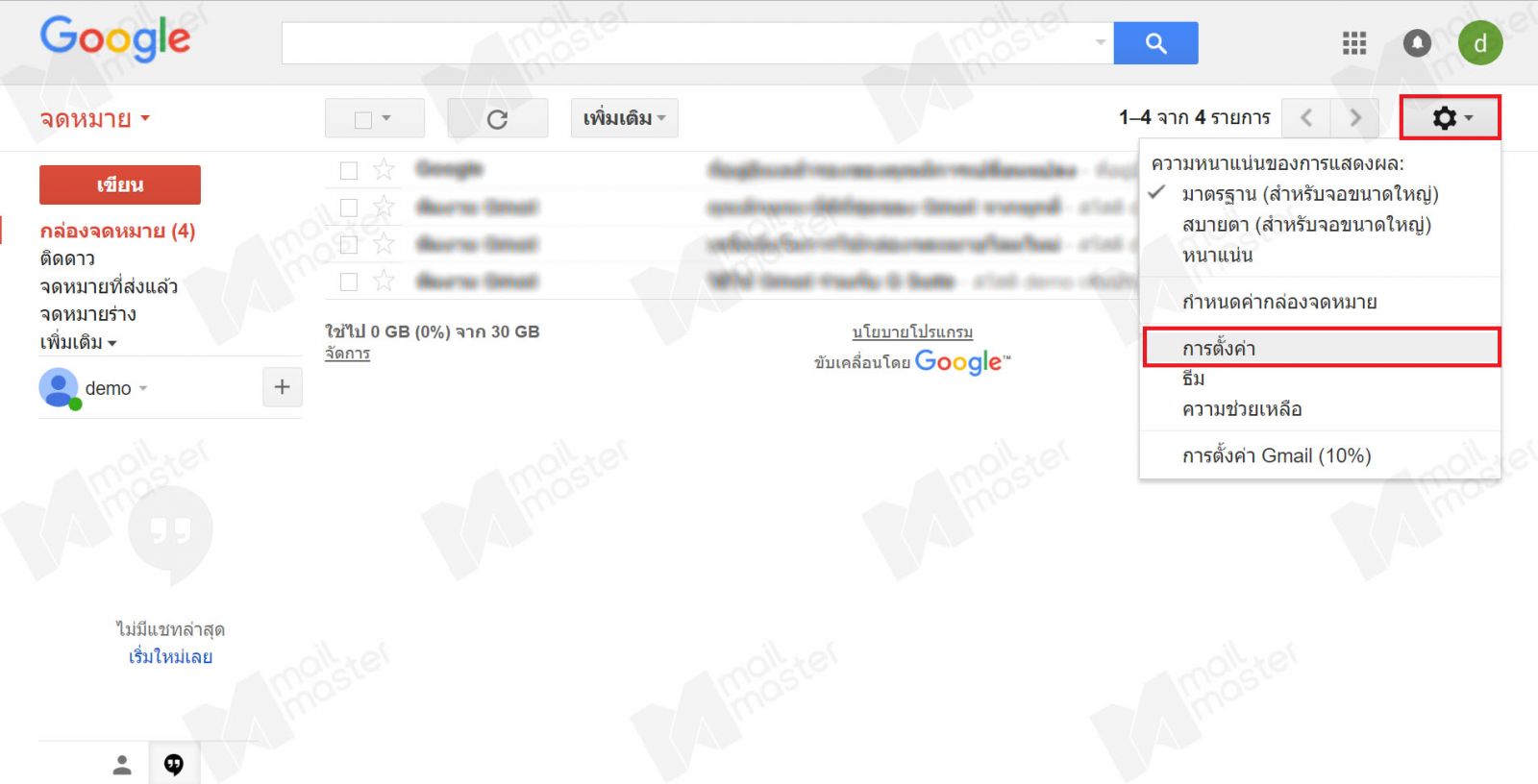 1. คลิกรูปเฟืองที่ด้านบนขวา เลือกการตั้งค่า