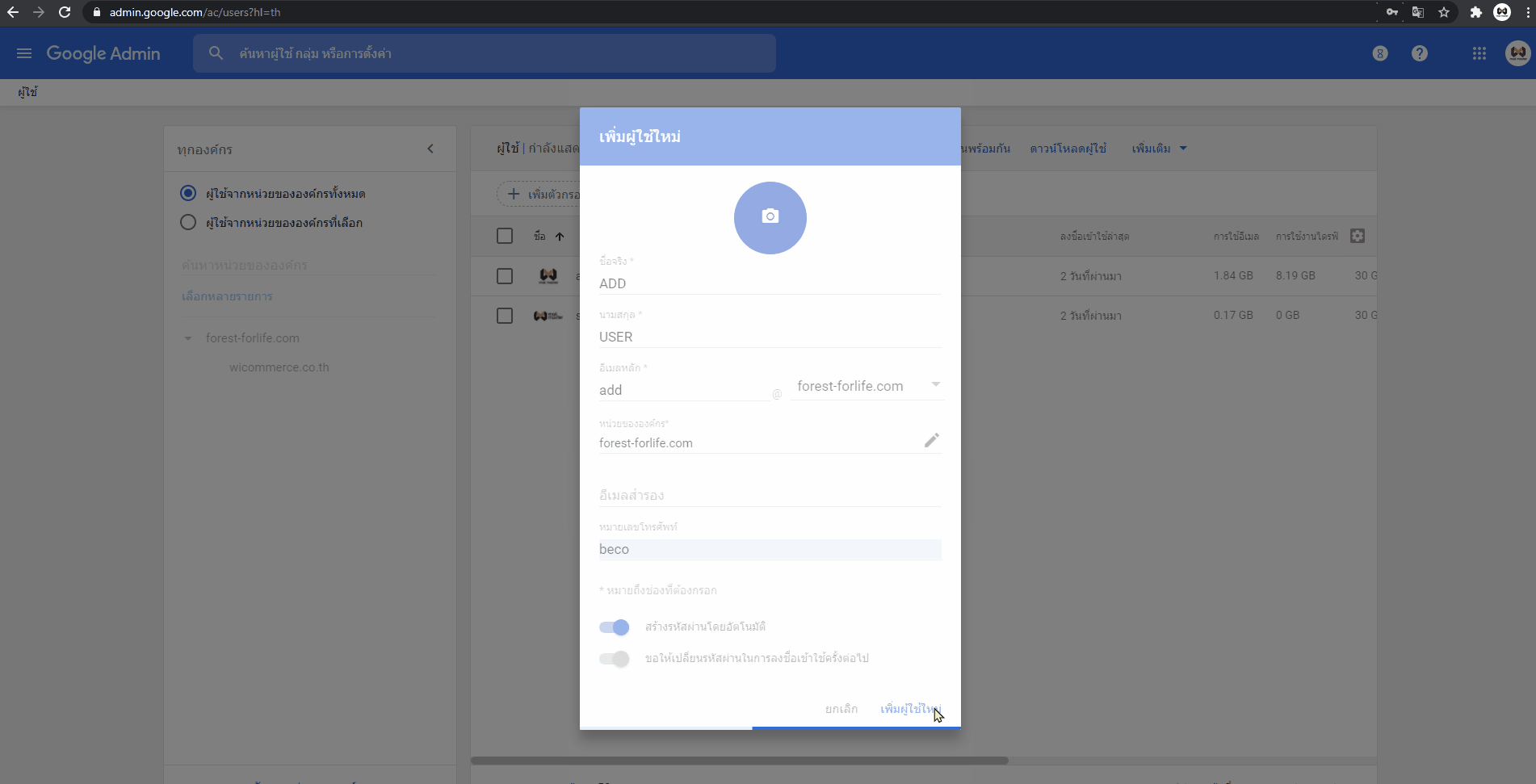 4. จากนั้นกด "เพิ่มผู้ใช้ใหม่" สามารถ เปิดตาเพื่อ ดูรหัสผ่าน หรือ กด คัดลอก ได้