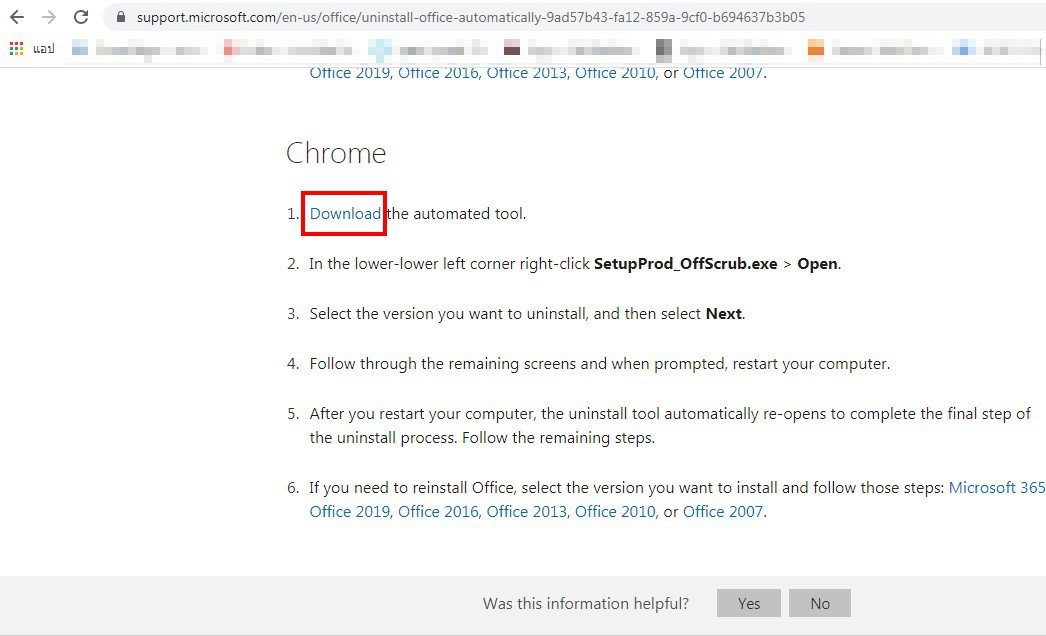 การถอนติดตั้ง Microsoft Office Old Version