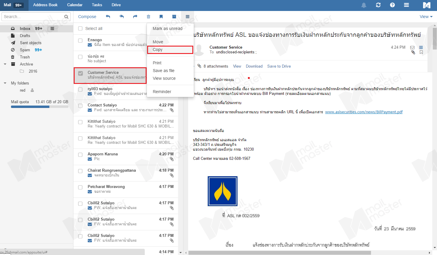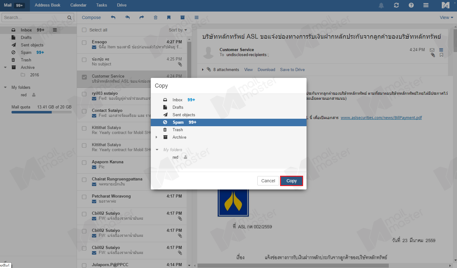 Multi-Cloud Business Email - คู่มือการใช้งาน - การ COPY อีเมล