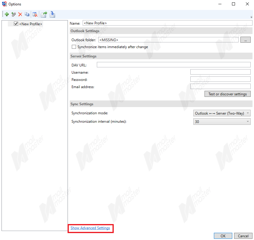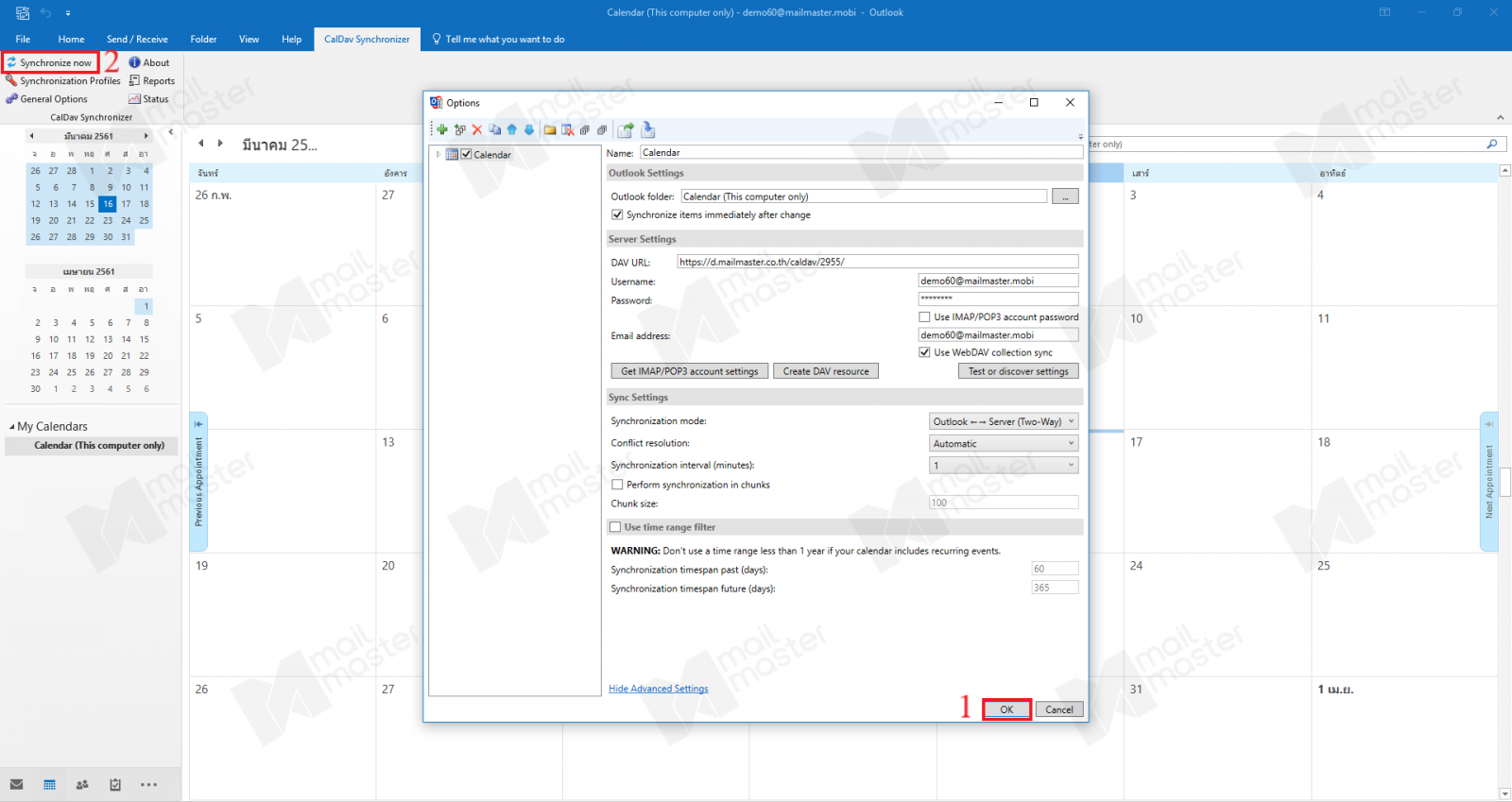 5.1 กรอก DAV URL “ https://d.mailmaster.co.th/caldav/ ”