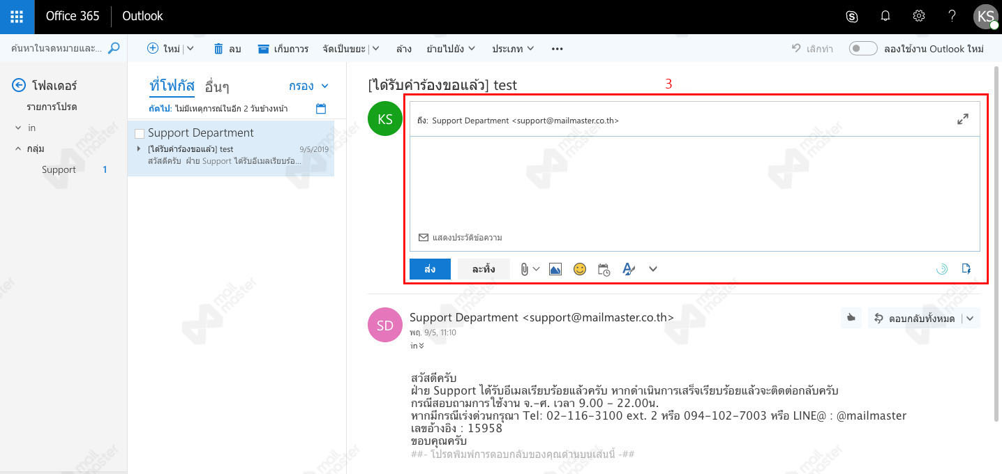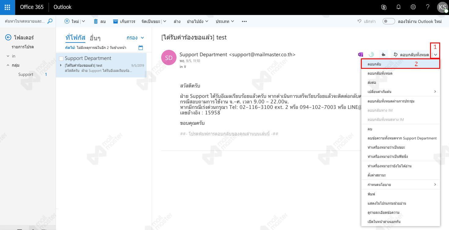 Office 365 - คู่มือการใช้งาน - ตอบกลับอีเมล (REPLY)