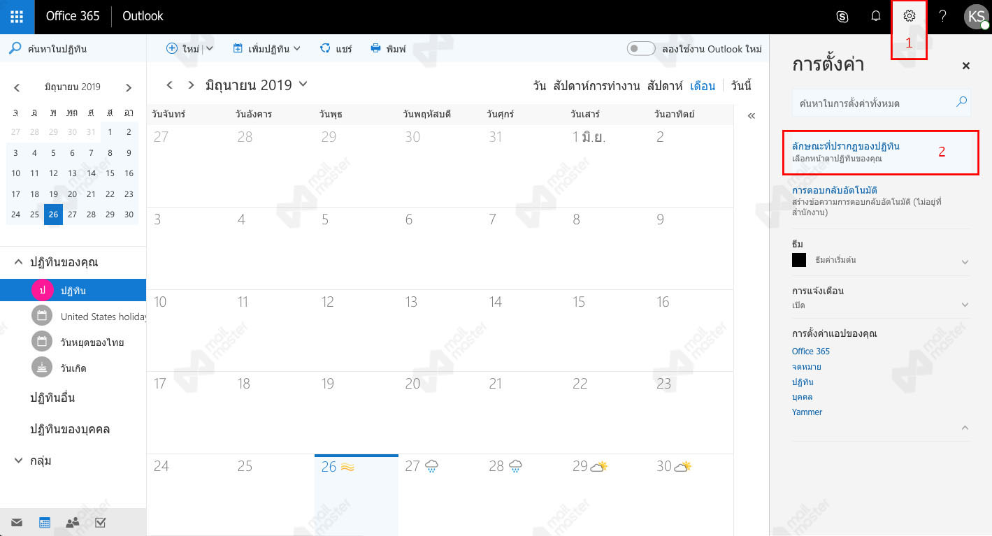 ตั้งค่าลักษณะที่ปรากฏบนปฏิทิน