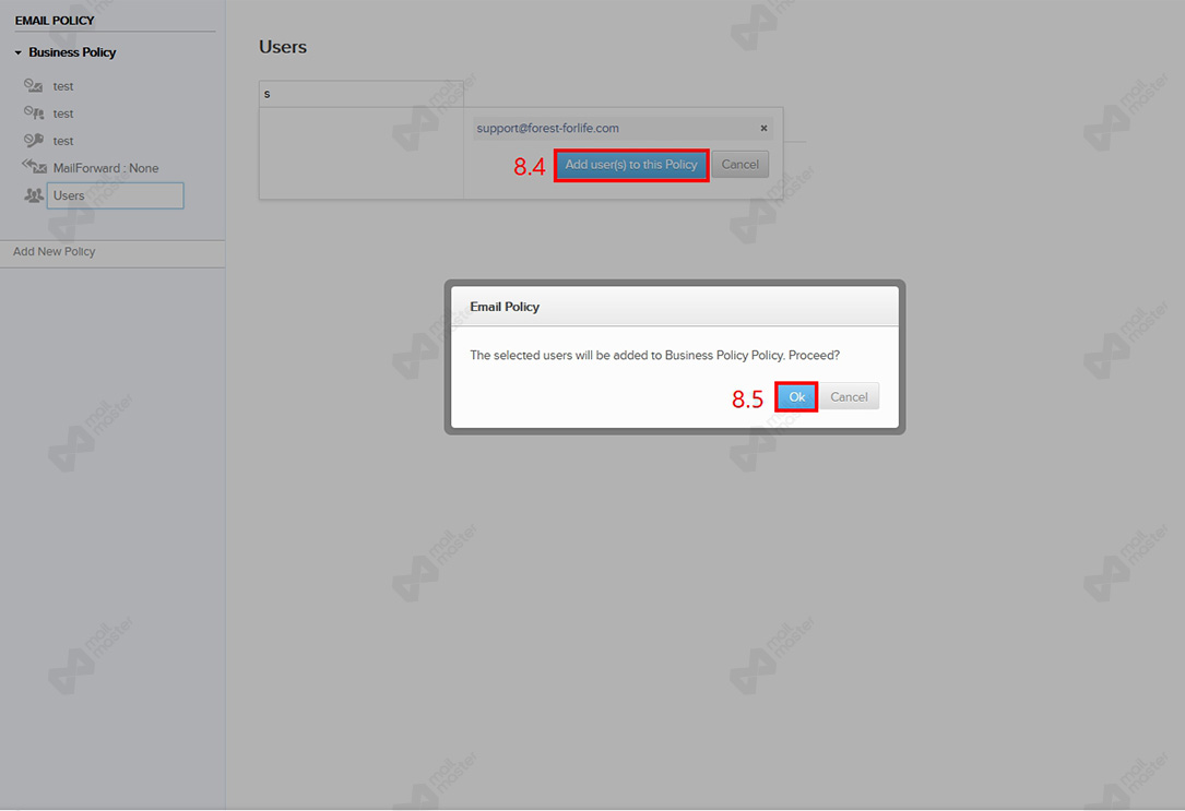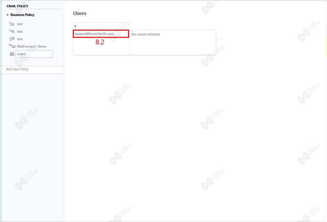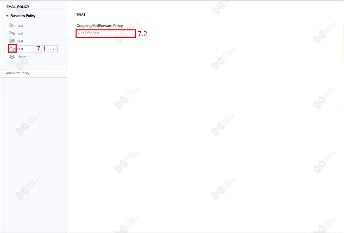 7.2 ไปที่ Outgoing MailForward Policy ใส่ E-mail ที่ต้องการ Forward เมื่อส่งออก
