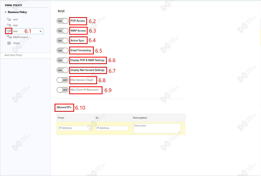6.9 เปิด/ปิด ข้อ จำกัด IP ไคลเอ็นต์เมล