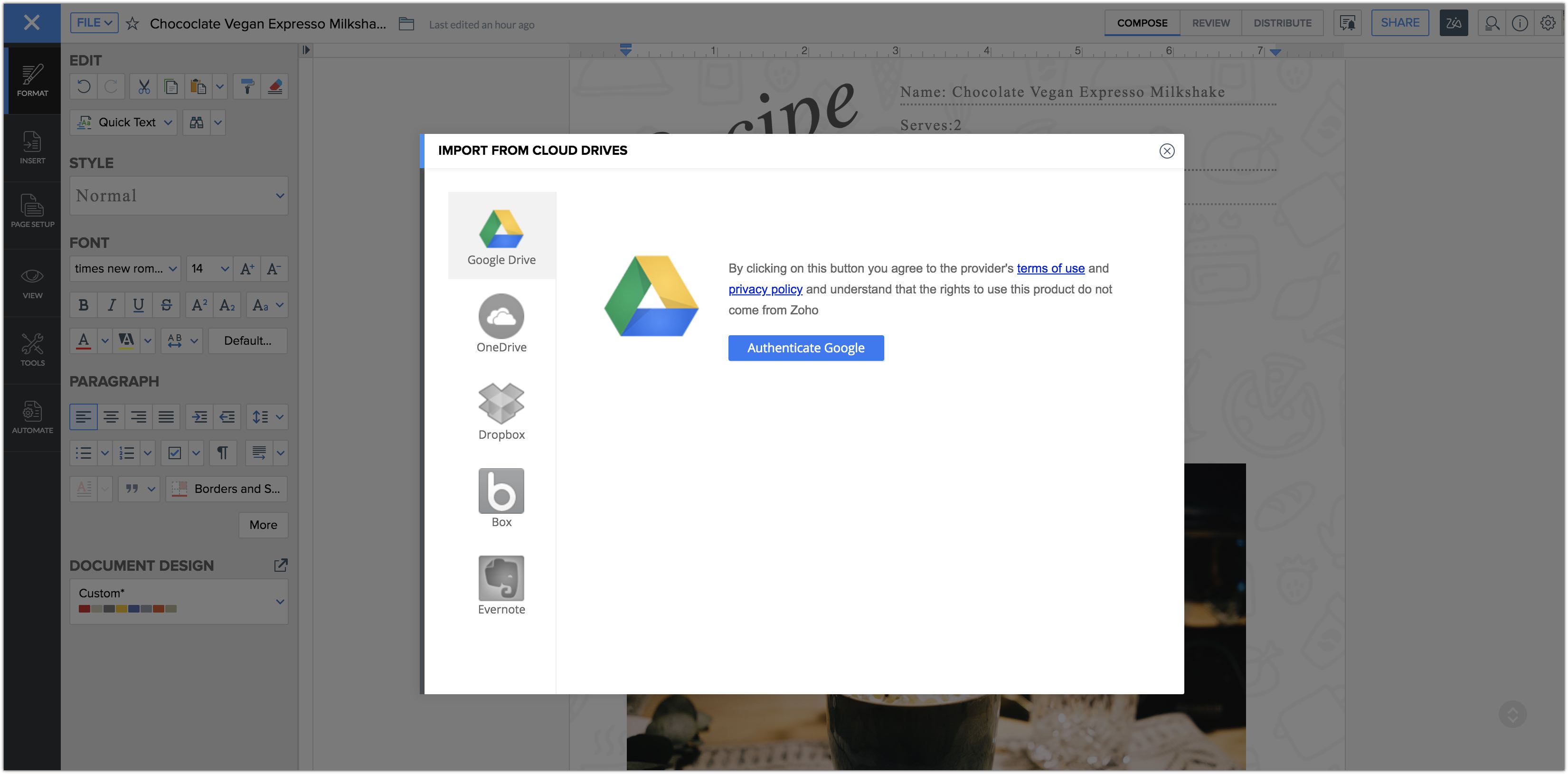 นอกเหนือจากการนำเข้าเอกสารจากเดสก์ท็อปส่วนตัวของคุณตอนนี้คุณสามารถนำเข้าเอกสารจากบริการเช่น Dropbox, กล่อง, Ever note เป็นต้น
