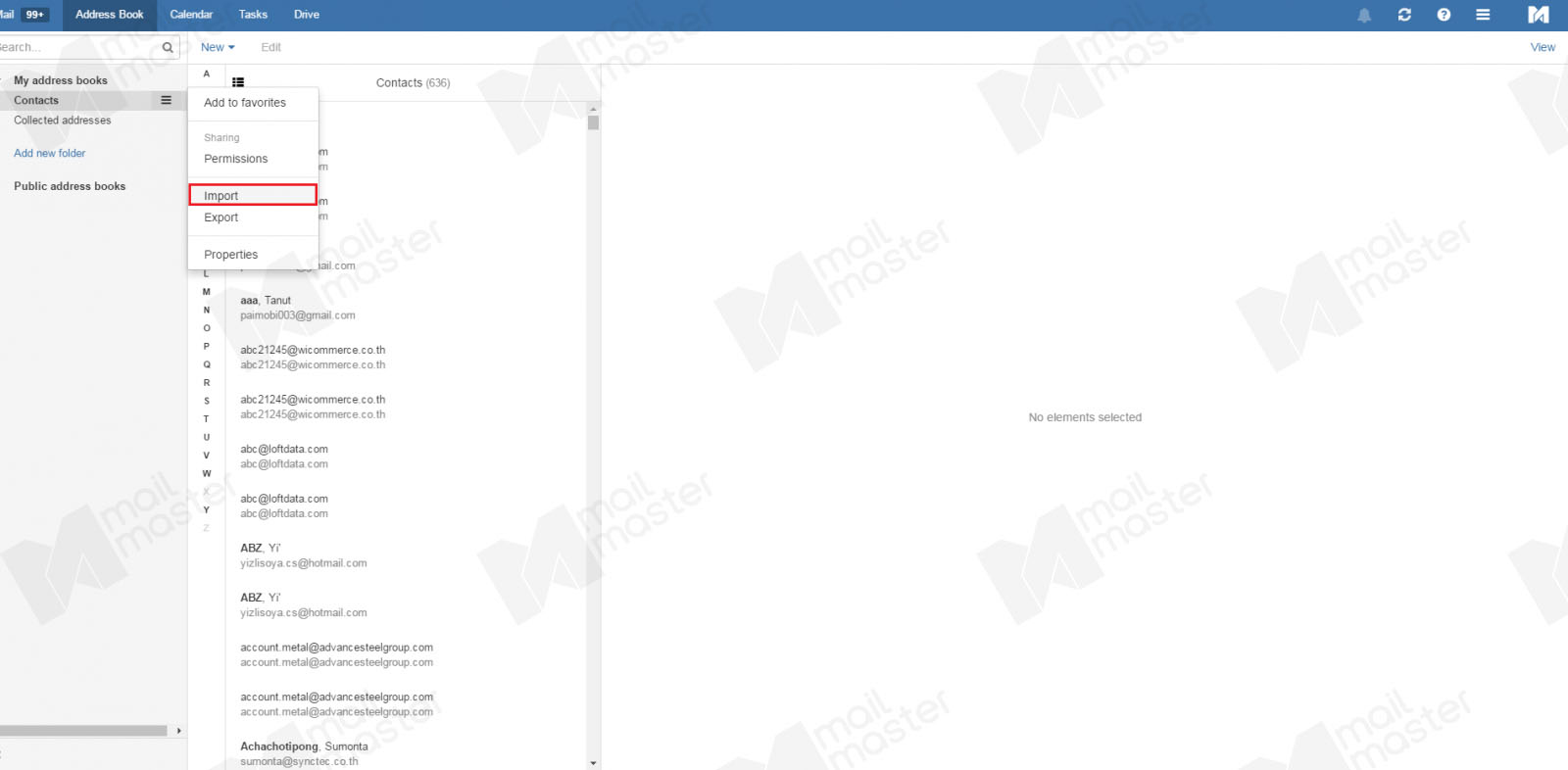 11 ไปที่หน้า Address Book แล้วเลือก Folder-specific actions ที่ Icon ถัดจากชื่อของ Folder แล้วคลิกที่ Import