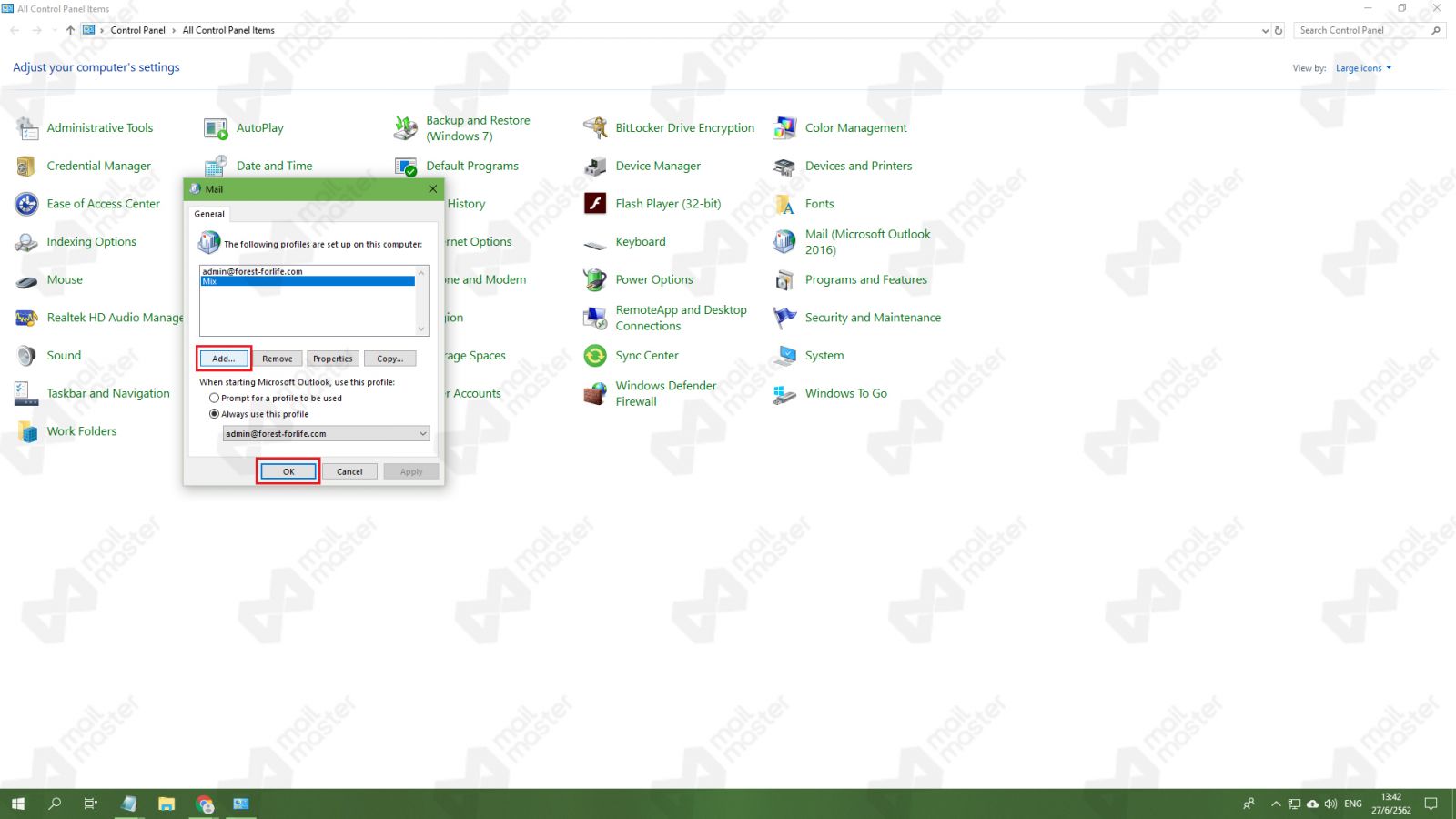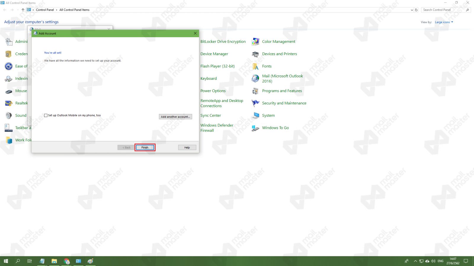 หลังจากนั้นเปิดโปรแกรม Outlook แล้วเริ่มใช้งานได้เลย