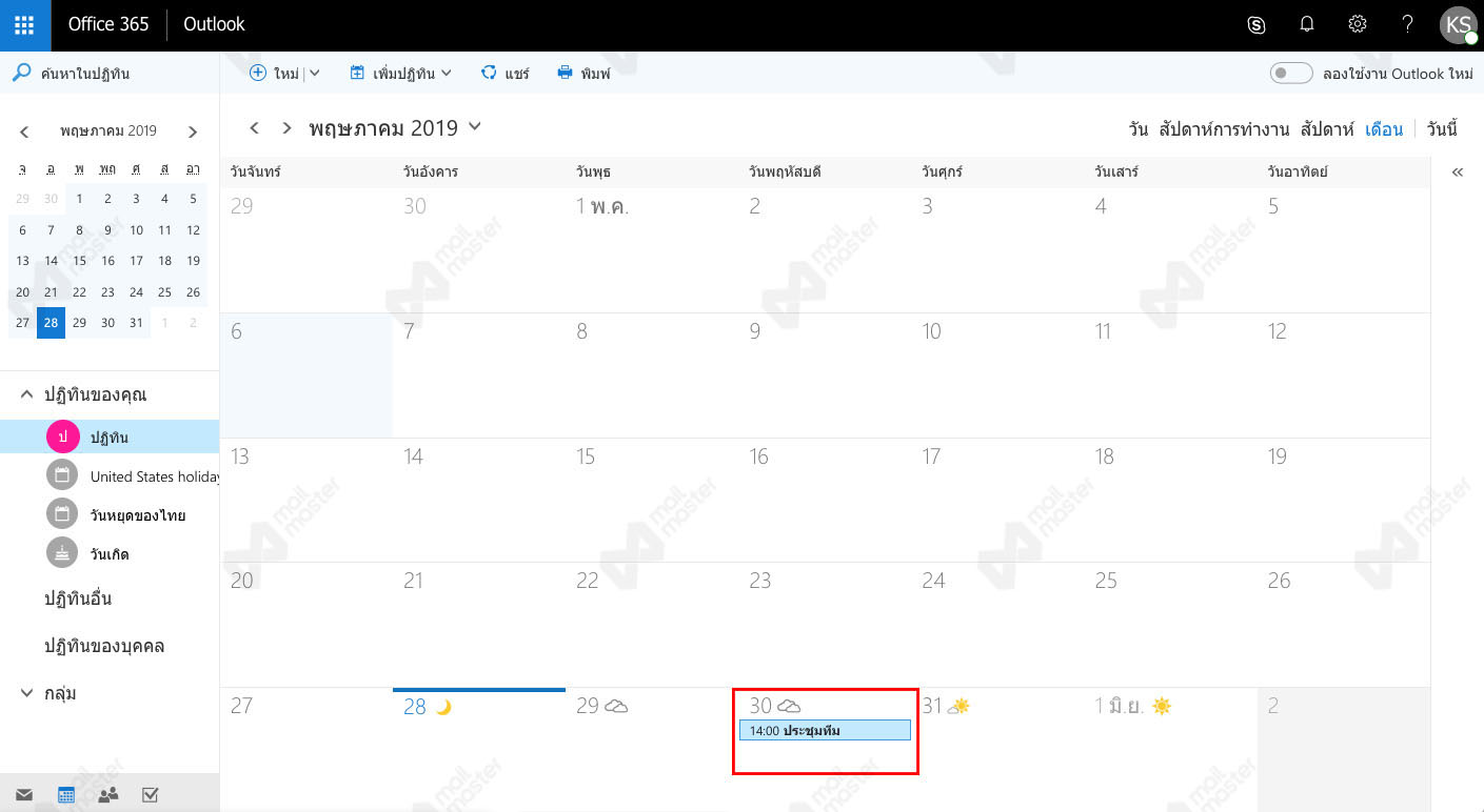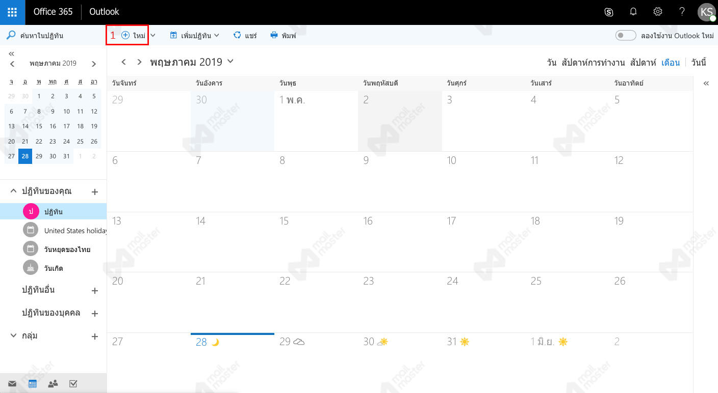 ปฏิทินบน OFFICE 365