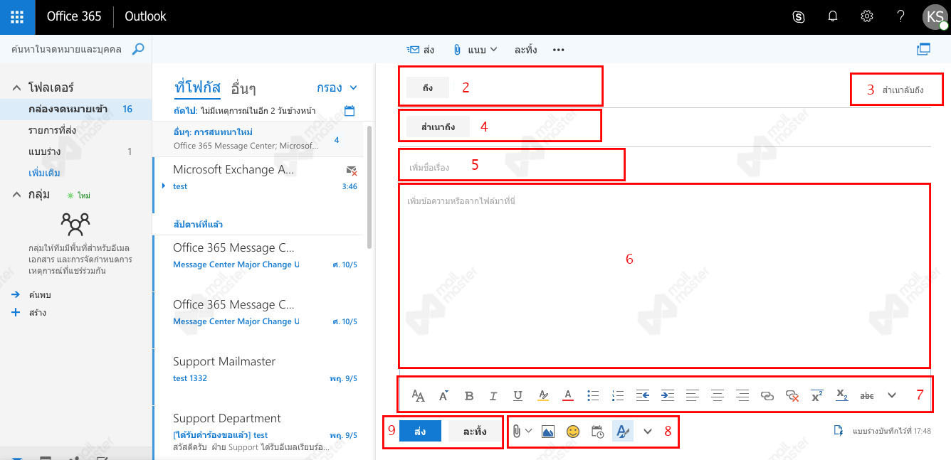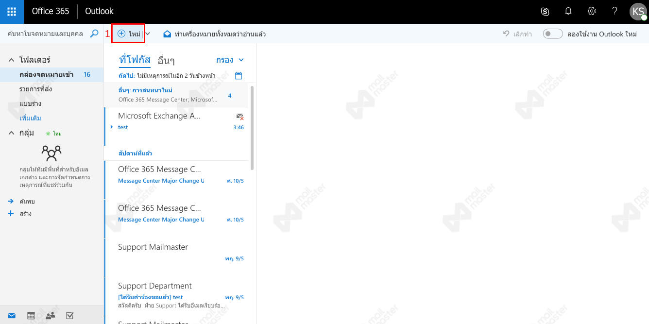 1. ไปที่หน้าแรกของ Outlook 365 เลือก “Inbox” 1.1 จากนั้นให้คลิกเลือกอีเมลที่ต้องการทำการ Report หรือ Spam ทางขวามือ 1.2 เสร็จแล้วไปที่ “Junk หรือ เมลขยะ” บนเมนูบาร์ เลือก “Junk หรือ เมลขยะ” อีกครั้ง ตามภาพตัวอย่าง 2. ...