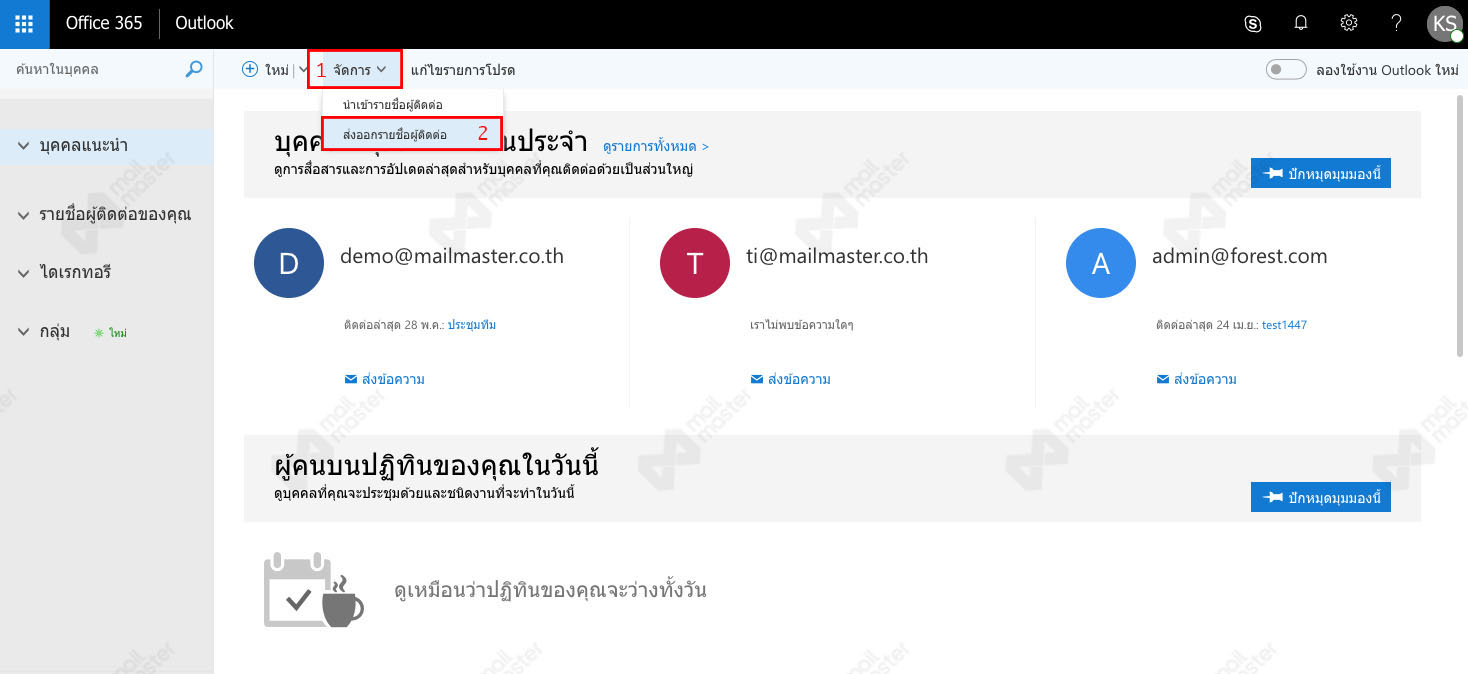 1. เข้าที่หน้า บุคคล จากนั้นไปที่ "จัดการ" 2. คลิกที่ "นำเข้าที่ติดต่อ" 3. ขั้นตอนนี้ ให้เลือกไฟล์รายชื่อผู้ติดต่อที่เตรียมไว้ โดยกด "เรียกดู" 4. ให้คลิกเลือกไฟล์รายชื่อผู้ติดต่อที่เตรียมไว้ จากนั้นกด "Open" 5. เมื่อเลือกไฟล์เรียบร้อยแล้ว ...