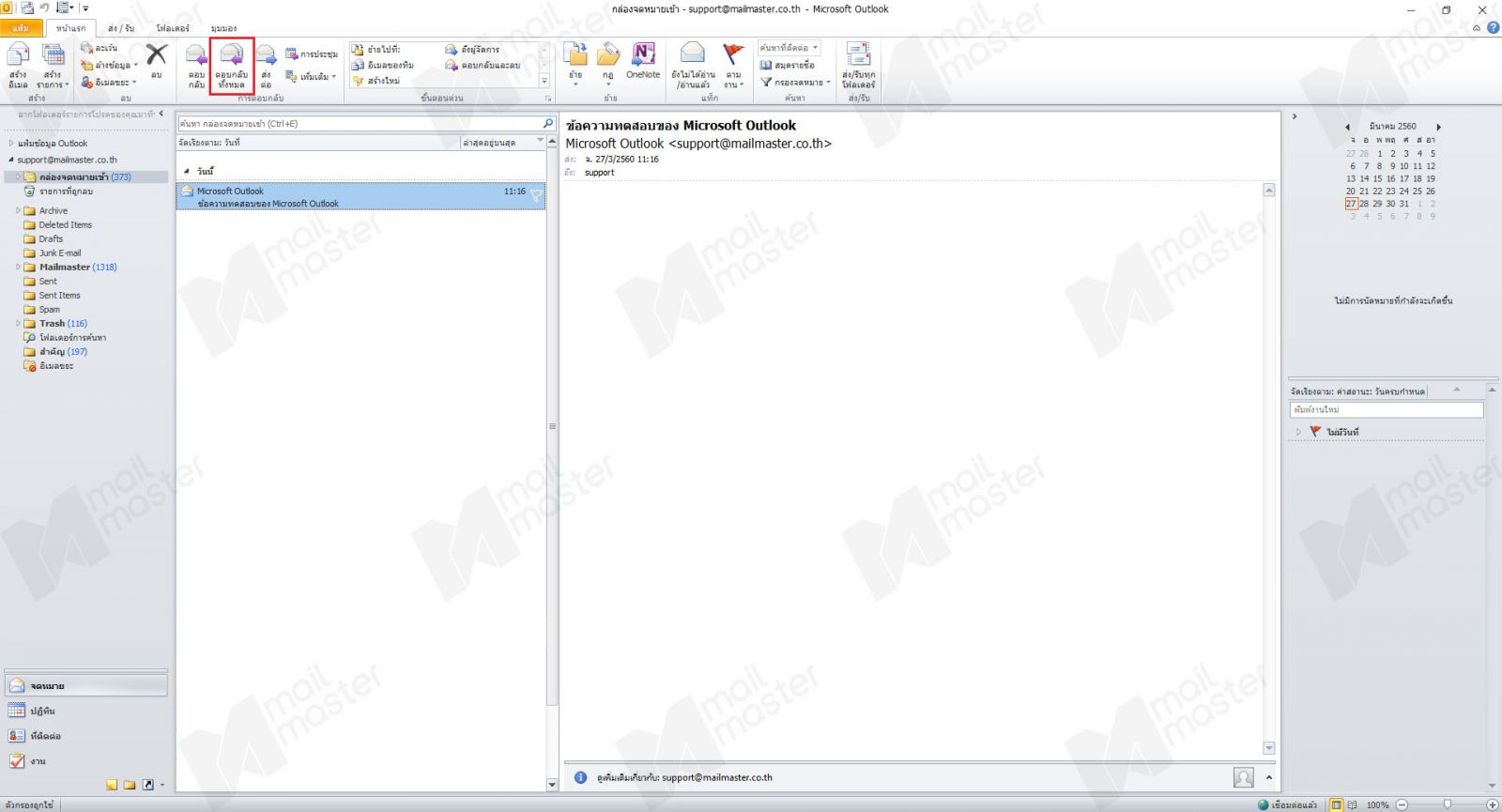 1. เลือกอีเมลที่จะตอบกลับ จากนั้นกดที่ปุ่ม "ตอบกลับทั้งหมด"