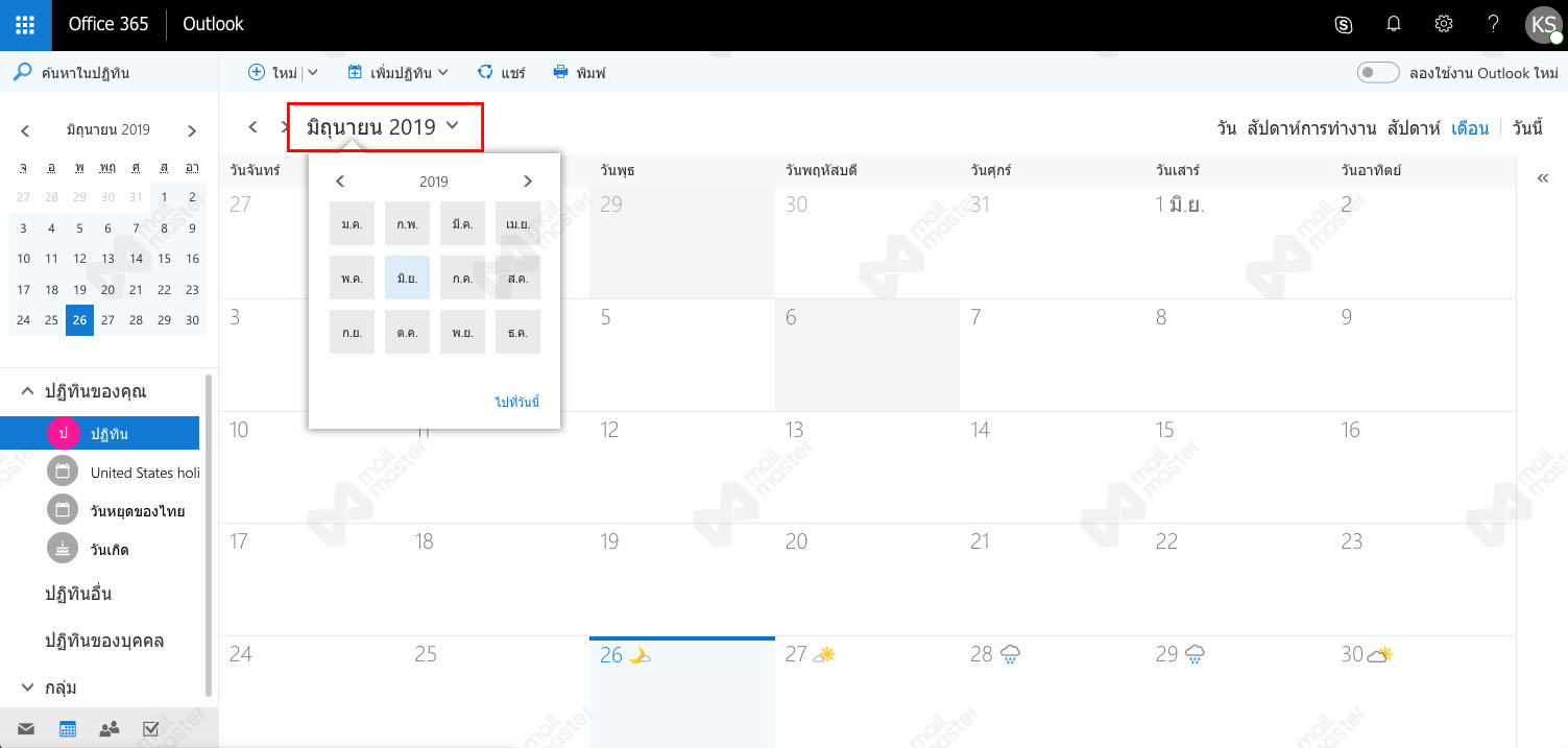 ตัวเลือก "เดือน" สามารถเลือกเดือนที่ต้องการให้แสดงบนปฏิทิน