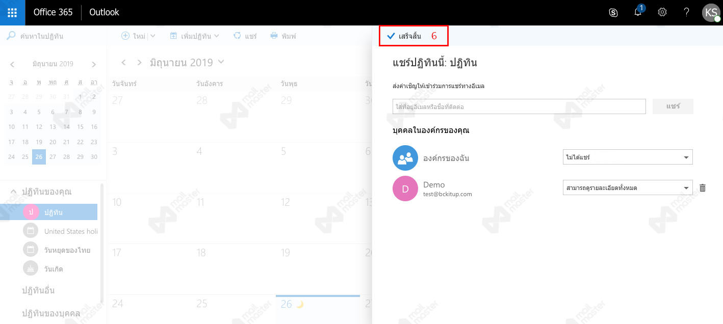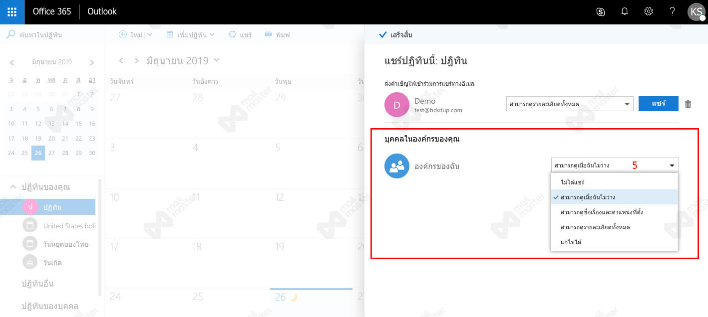 5. หากต้องการแชร์ให้กับบุคคลอื่นในองค์กร สามารถ "กำหนดสิ่งที่ต้องการให้มองเห็นบนปฏิทิน" ได้