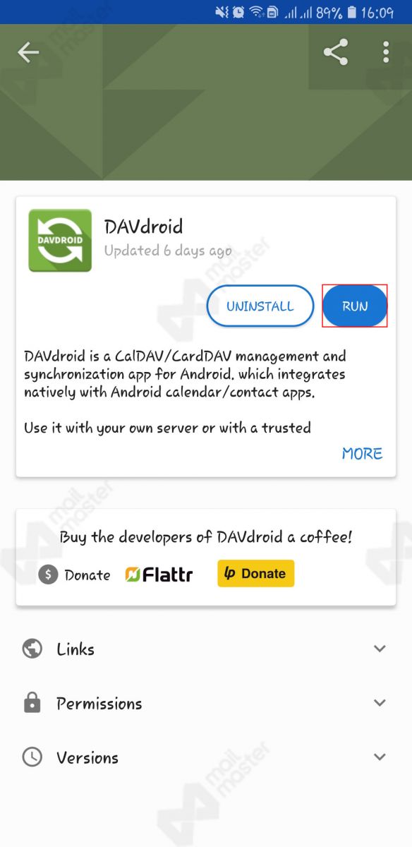 กดเข้าไปที่ "DAVdroid Sync Contacts,Calendar and Tasks"