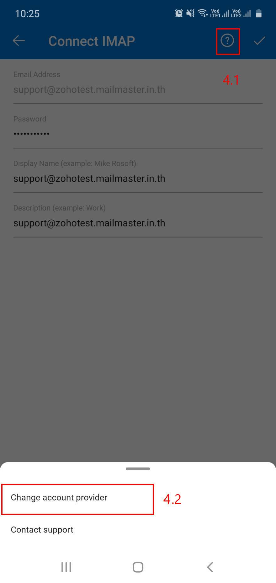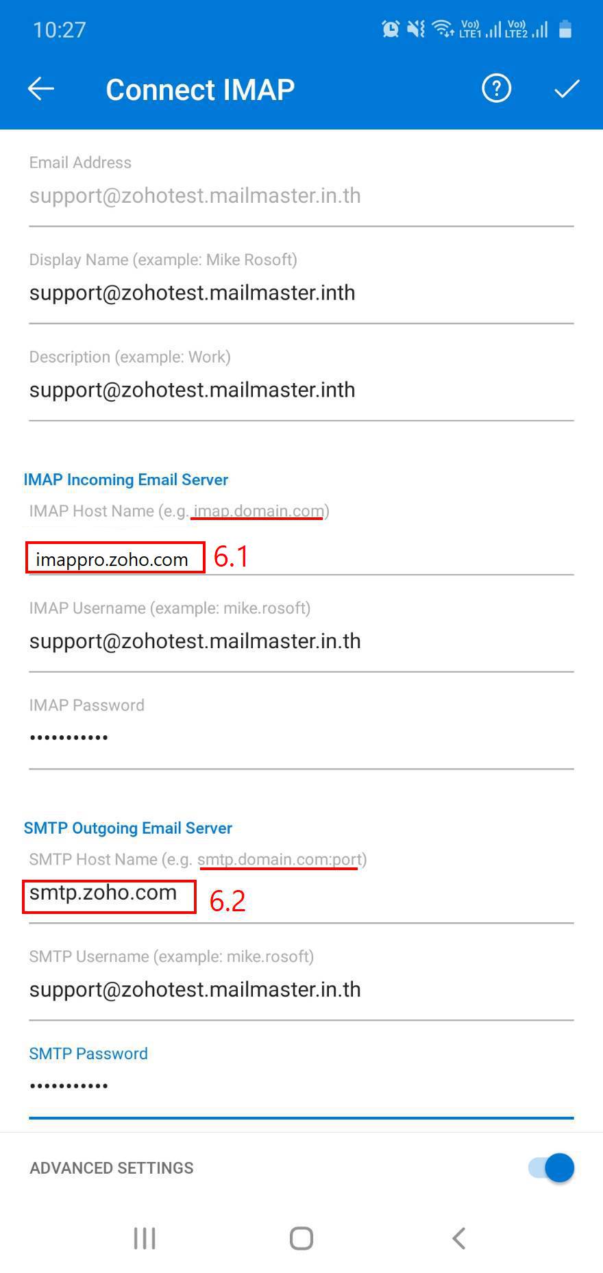 1. ไปที่โปรแกรม K-9 Mail 2. จากนั้น กด Next 3.เลือก IMAP 4.1 Incoming mail server : imappro.zoho.com 4.2 Security SSL/TLS 4.3 Port 993 จากนั้น กด Next 5.1 outgoing mail server : smtp.zoho.com 5.2 Security ...