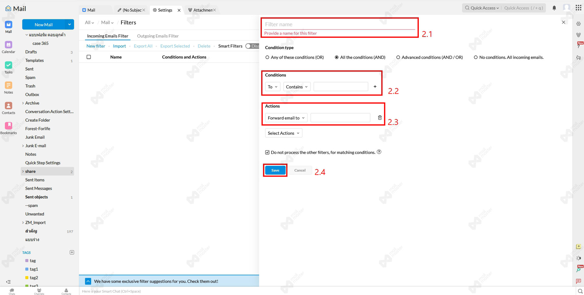 2.3 เลือก Forward email to >> ใส่ชื่อ Email ผู้ที่ต้องการ Forward ไป
