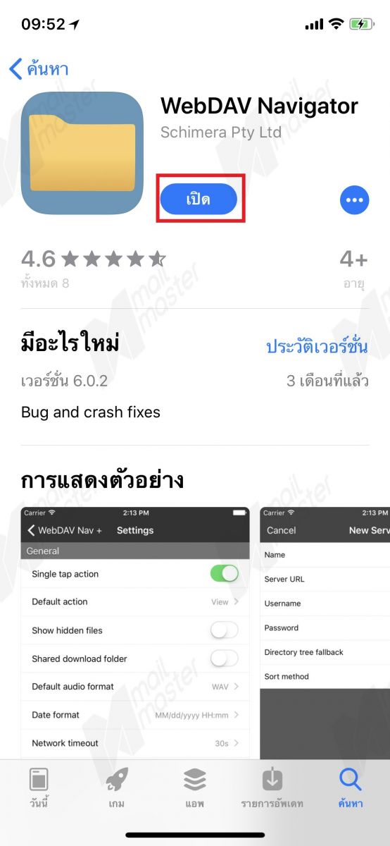 1. Download App "WebDAV Navigator" จาก "App Store"