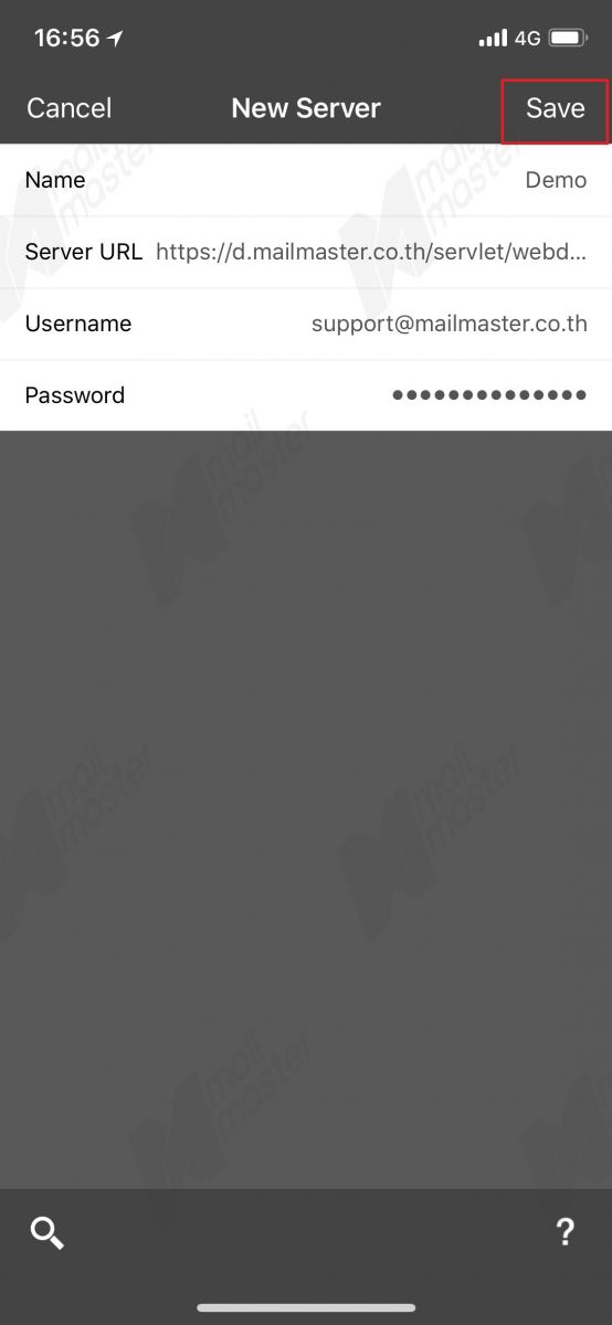 5. กรอกอีเมล และ รหัสผ่าน ของตัวเอง ในช่อง Username และ Password แล้วกด "Save"
