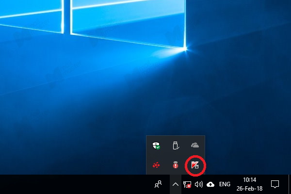 01. กดที่ show hidden icon จะเห็นว่า มี icon โปรแกรม Kaspersky internet Security