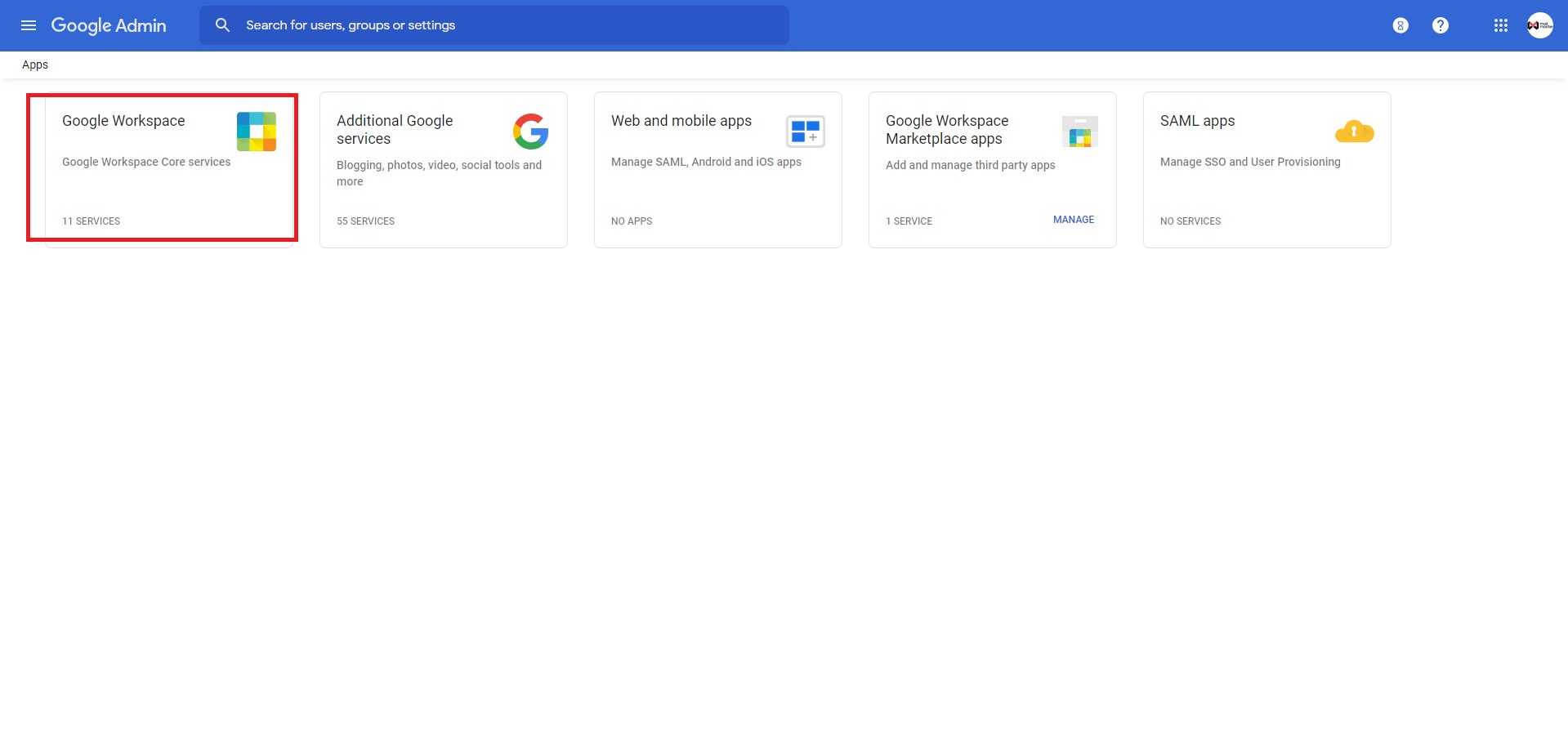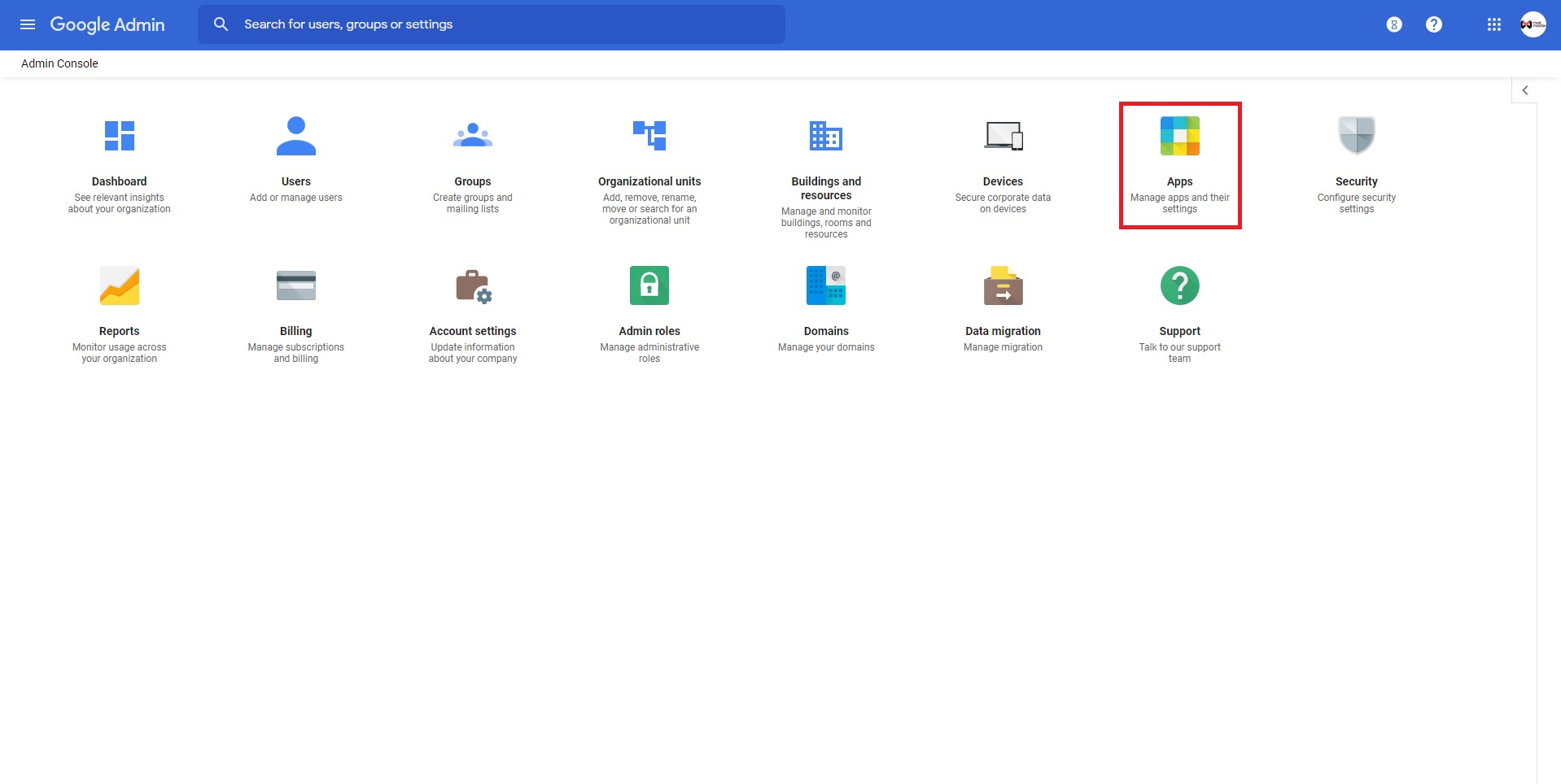 เลือก "Apps" ในหน้าคอนโซลผู้ดูแลระบบ