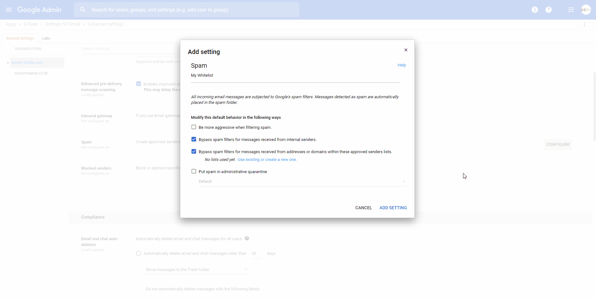 จากนั้นทำการใส่อีเมลหรือโดเมนที่ต้องการสร้างเป็น Whitelist จากนั้นกด "Save"