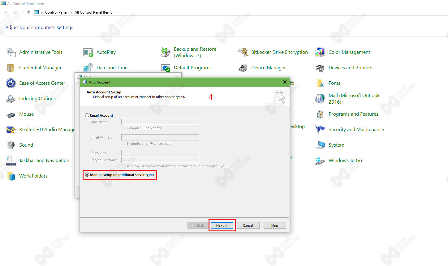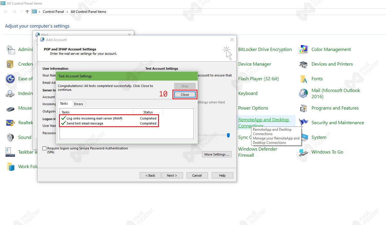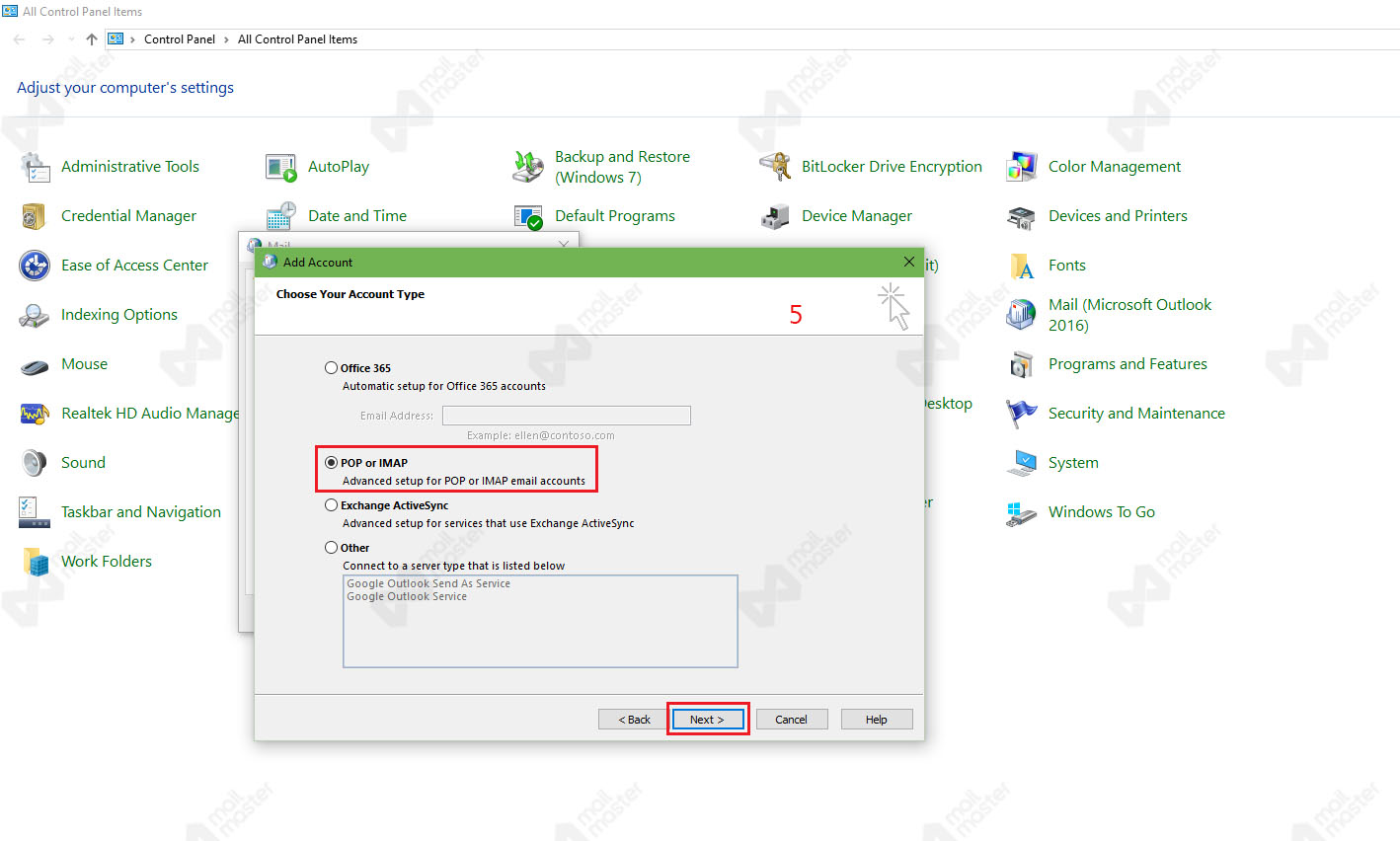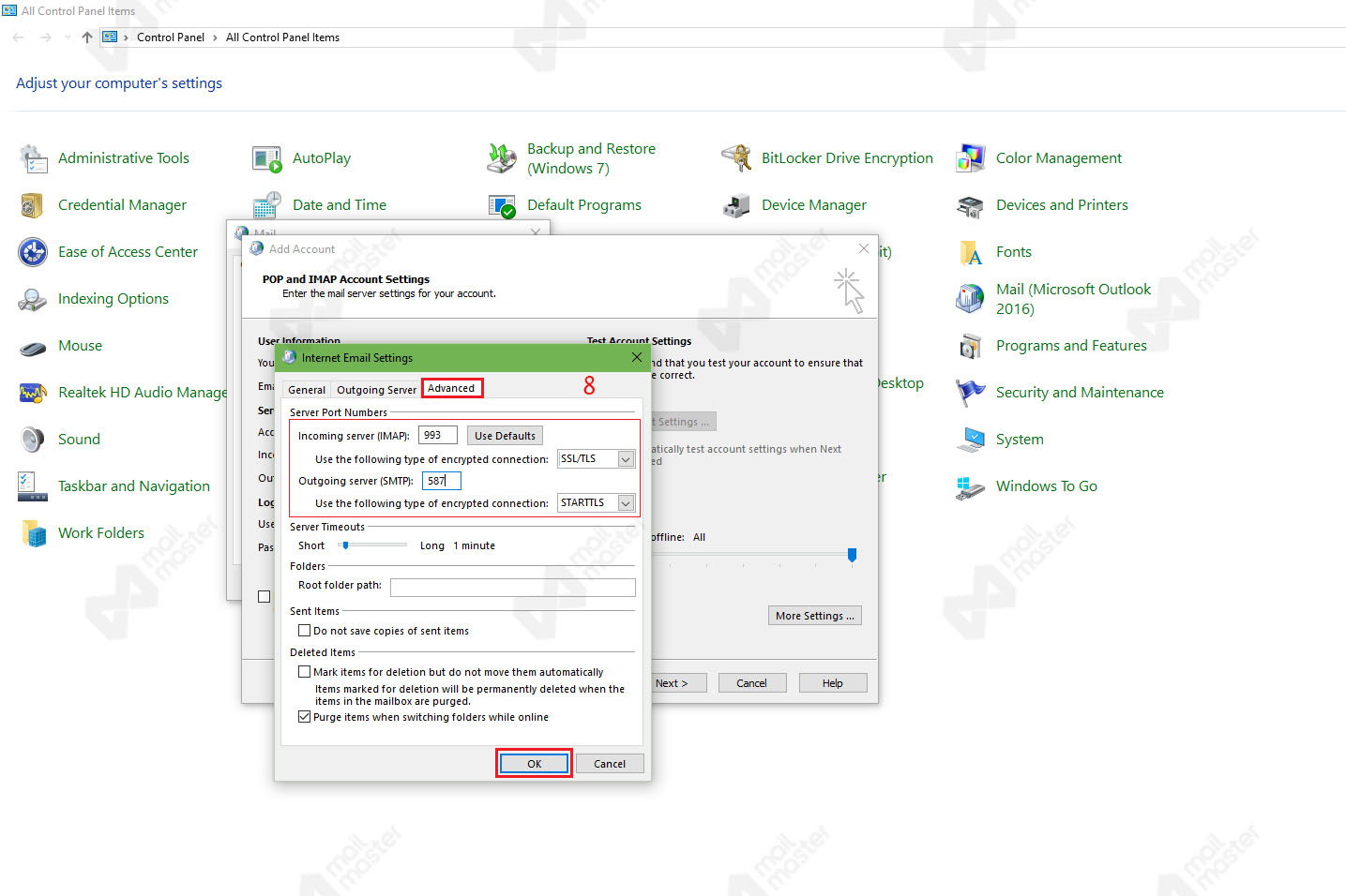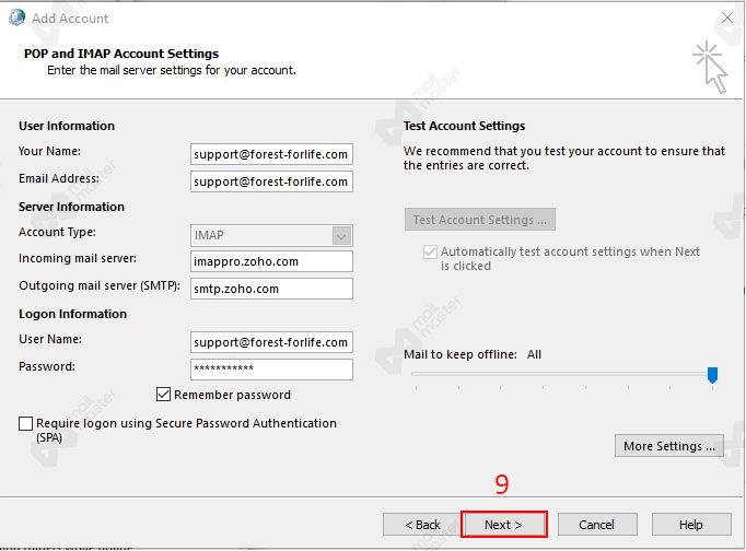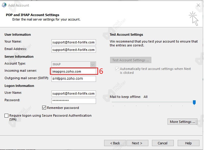 6. จะปรากฏหน้าต่าง POP and IMAP Account Settings ให้ " กรอกข้อมูลที่ช่องว่างทุกช่อง "